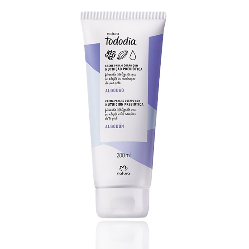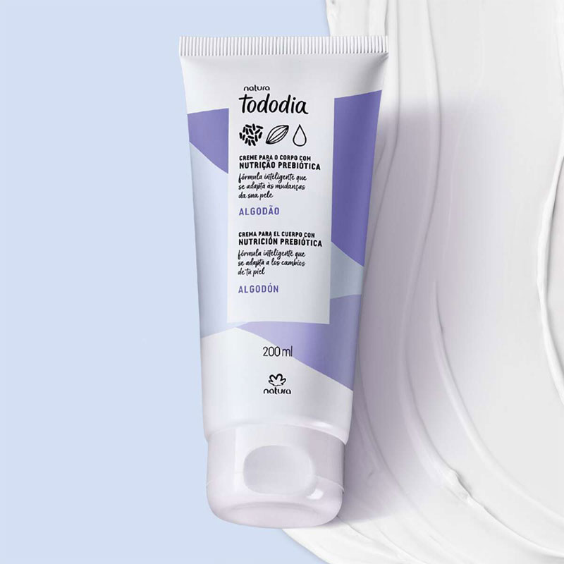 Crema corporal Natura Tododia Algodão 200 ml con nutrición prebiótica que hidrata profundamente, dejando la piel suave, ligeramente perfumada y con sensación de algodón. Textura cremosa, de rápida absorción, ideal para uso diario. Fragancia floral ligera, dulce y reconfortante, perfecta para quienes buscan cuidado corporal con ingredientes más naturales.