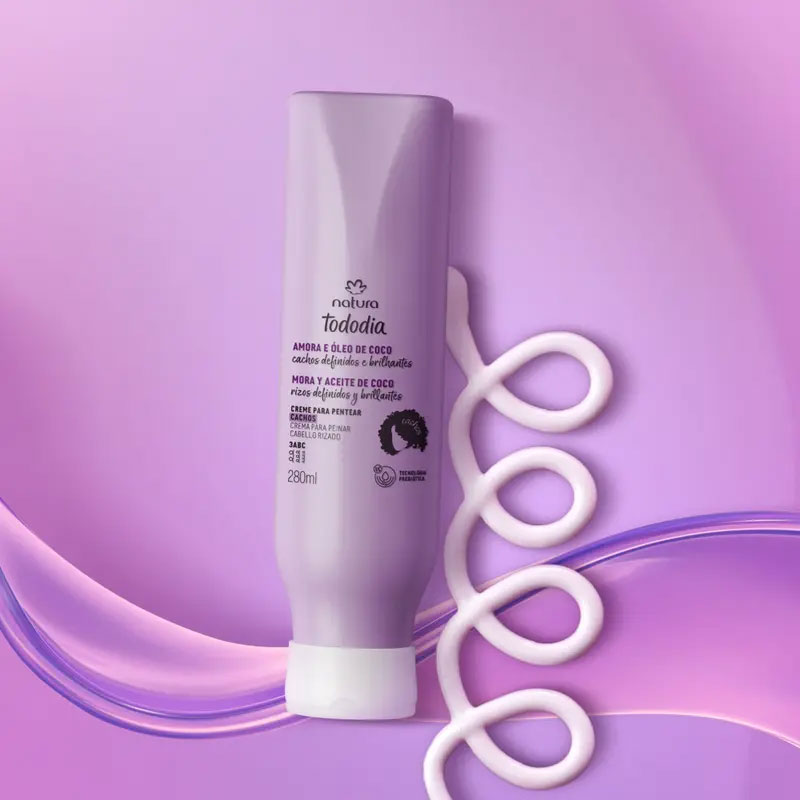 Crema para peinar con amora y aceite de coco, que hidrata, define y protege los cachos, aportando brillo y suavidad.