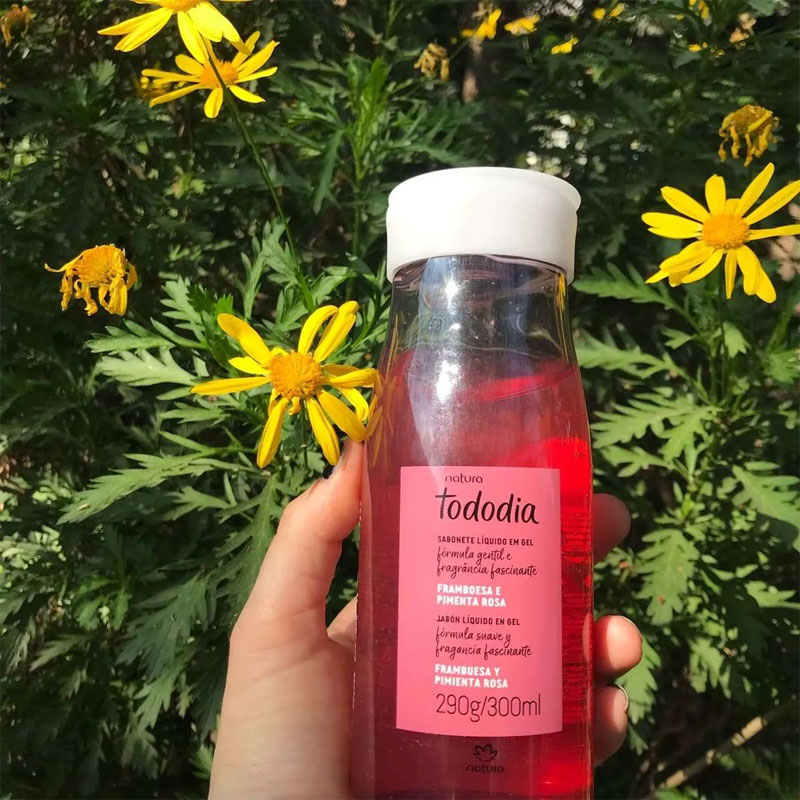 Este jabón líquido en gel de Natura Tododia ofrece una limpieza delicada, manteniendo la hidratación natural de la piel. Su textura en gel forma una espuma cremosa con una fragancia frutal ligera y envolvente, combinando notas de amora roja y jabuticaba. Es adecuado para todo tipo de piel y está dermatológicamente probado.