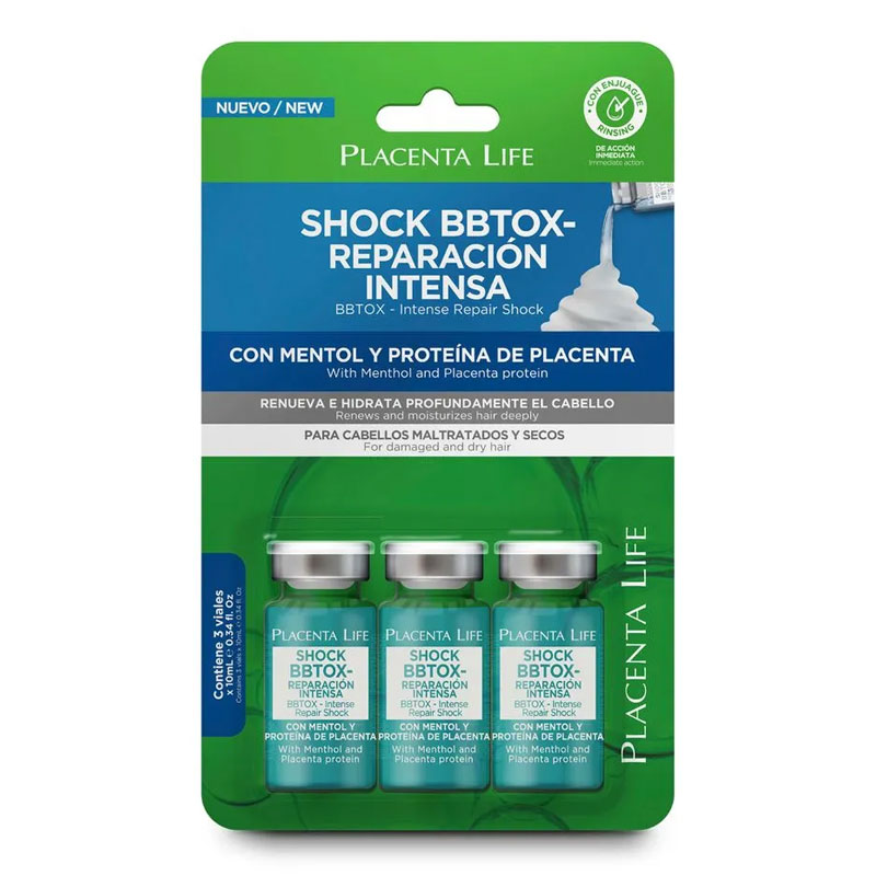 Tratamiento capilar intensivo que recupera el cabello extremadamente dañado, seco o maltratado, con proteína de placenta que hidrata y refuerza la estructura de la fibra capilar; forma una capa protectora, aporta brillo extremo, protección térmica, y gracias al mentol brinda frescor al cuero cabelludo.